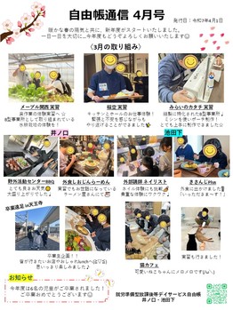 自由帳通信の4月号を発行いたしました。子ども達が今月も活躍していますのでぜひご一読くださいね。(^^)