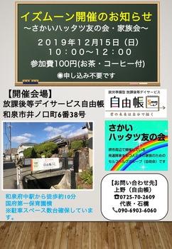 12月のイズムーン(発達障がい家族会)は15日(日)です。 当事者様、ご家族様お気軽にご参加ください。 申し込みは不要です。