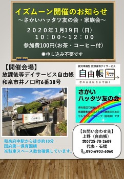 1月のイズムーン(発達障がい家族会)は19日(日)です。 当事者様、ご家族様お気軽にご参加ください。 申し込みは不要です。