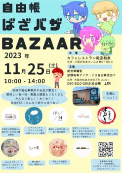 11/25に自由帳主催のばざバザBAZARを開催します。詳細はチラシをご覧ください!!